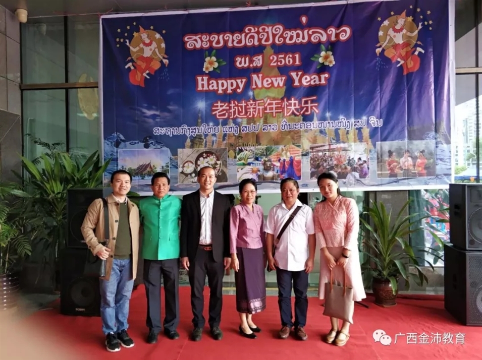 2018年,4月7日上午,廣西金沛教育執(zhí)行董事粟宥朝先生,受到老撾人民民主共和國(guó)駐南寧總領(lǐng)事館誠(chéng)摯的邀請(qǐng)后赴老撾駐南寧總領(lǐng)事館為老撾人民帶來了新年的祝福。
