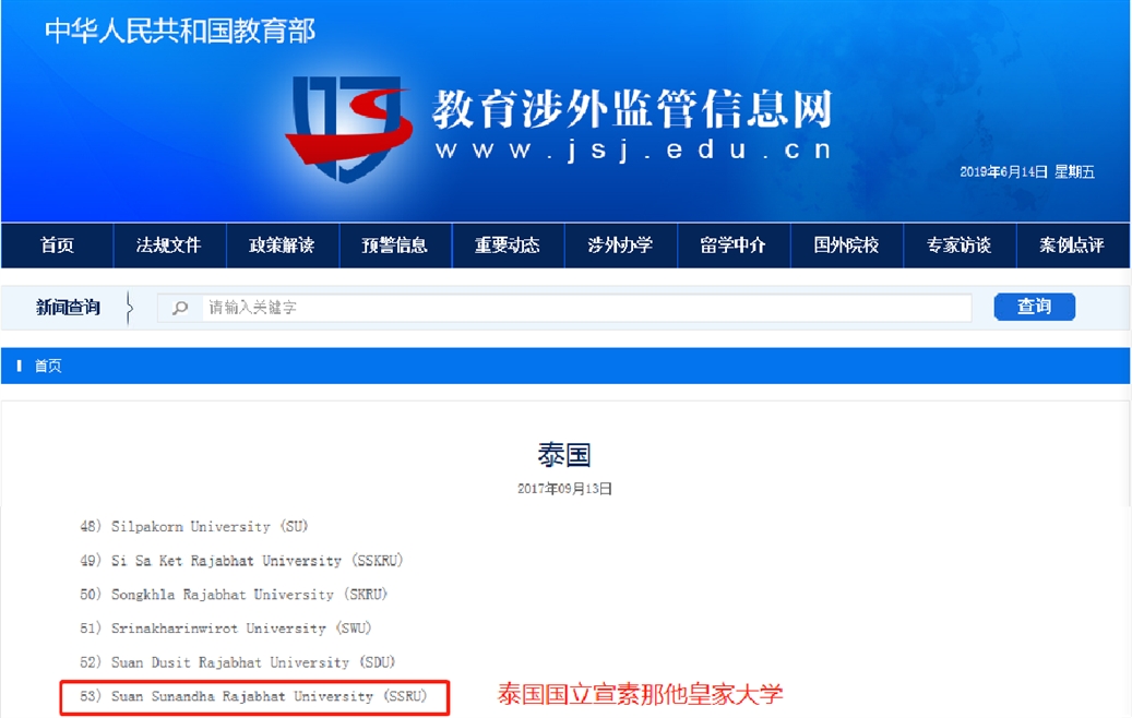 泰國國立宣素那他皇家大學(xué)(SSRU)是全泰國名列第一的皇家大學(xué),始建于1937年。學(xué)校設(shè)有14個(gè)學(xué)院以及附屬小學(xué)和附屬中學(xué)。大學(xué)有五大校區(qū),主校區(qū)坐落于首都曼谷中心的宣素那他皇家園林,另外四個(gè)校區(qū)分別是佛統(tǒng)校區(qū)、拉廊校區(qū)、夜功校區(qū)和烏汶校區(qū)。大學(xué)現(xiàn)有全日制本、碩、博在校生30000余名。