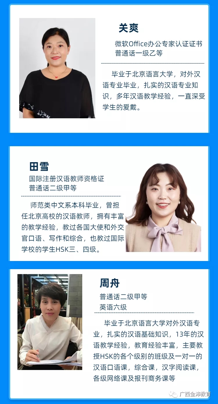 學(xué)習(xí)漢語找金沛,金沛漢語學(xué)院擁有雄厚師資力量和優(yōu)秀的教師團隊,中國名校名師在線課堂,扎實的專業(yè)知識、漢語考試技巧、方向,根據(jù)學(xué)生目標,制定適合的教學(xué)計劃,助你順利過關(guān)!