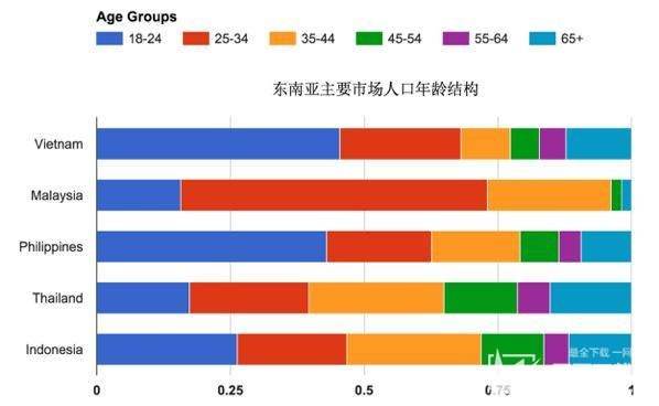 在中國,抖音的用戶主要來自于年輕人。 數(shù)據(jù)顯示,85%的抖音用戶的年齡都在24歲以下,抖音海外版Tik Tok在東南亞也不例外。據(jù)億邦動力網(wǎng)的數(shù)據(jù)分析,東南亞主要市場中18~24歲人口比例接近30%,遠(yuǎn)遠(yuǎn)高于中國的8%。