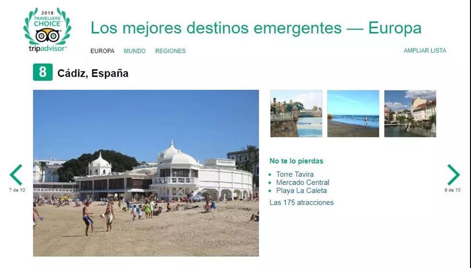 ▲ 加的斯位居2018年歐洲最熱門(mén)旅游目的地TOP10第八位