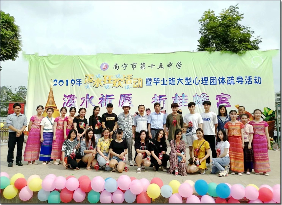 4月26日下午,廣西金沛教育與東盟各國(guó)留學(xué)生受邀參加了南寧市第十五中學(xué)第四屆潑水節(jié)活動(dòng)。
