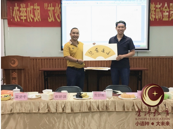 中華文化博大精深,在書法上的文化內(nèi)涵更是獨樹一幟,為加強中越兩國的文化交流,提高兩國間傳統(tǒng)文化的相互了解,金沛教育鳳嶺校區(qū)執(zhí)行董事、著名書法家岑亭儒給大家詳細(xì)講解了《中越文化之中國書法文化篇》,為中華傳統(tǒng)文化的發(fā)揚也出了一份力,并代表金沛教育向越南代表贈送了寓意為中越友誼的書法作品。