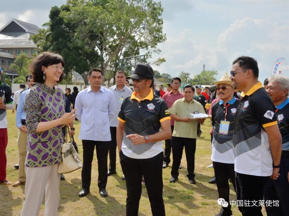 317日,于紅大使應(yīng)邀出席文萊首屆國際風(fēng)箏節(jié)開幕式。于紅大使在開幕式前看望中國選手,為他們加油鼓勁。于紅大使還陪同文萊蘇丹、王儲(chǔ)等王室成員和中國選手交流。